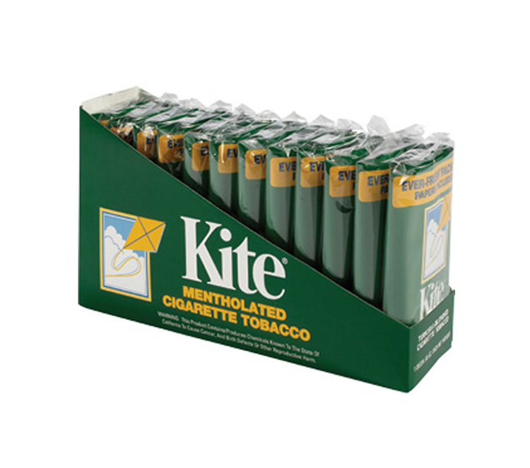 Kite Tobacco, Cigarette, Mentholated. Turkish & blended cigarette tobacco. 230 cigarette papers inside. Ever-fresh package. Tax class J. Made in USA
